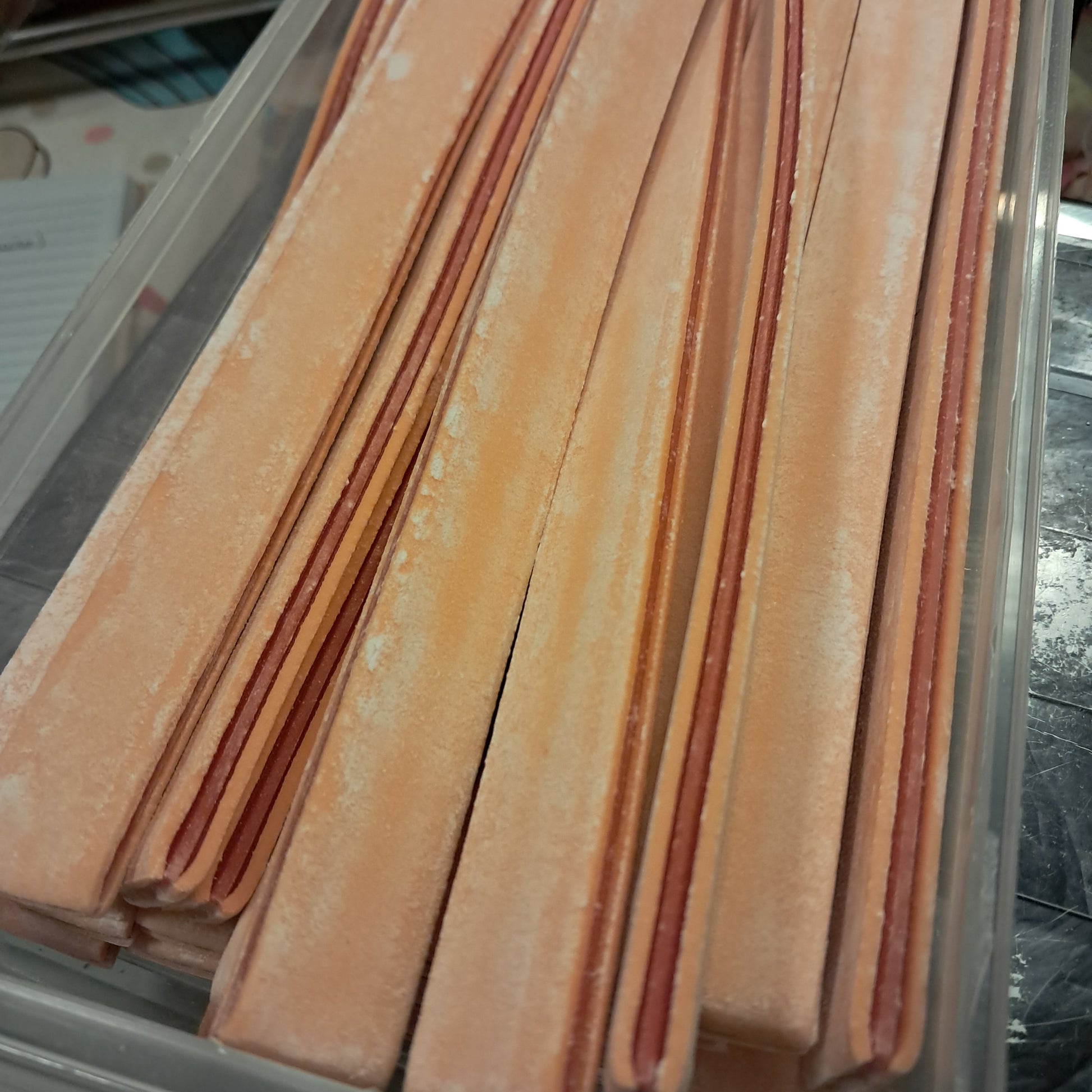 Ingrédients: sucre, sirop de glucose-fructose, farine de blé (gluten), eau, amidon de maïs, dextrose, acidifiants : E330, E296, gélatine, émulsifiant : E471, graisse de palme, arôme, conservateur : E202, colorants : E100, E110, E120i, E122, E129.